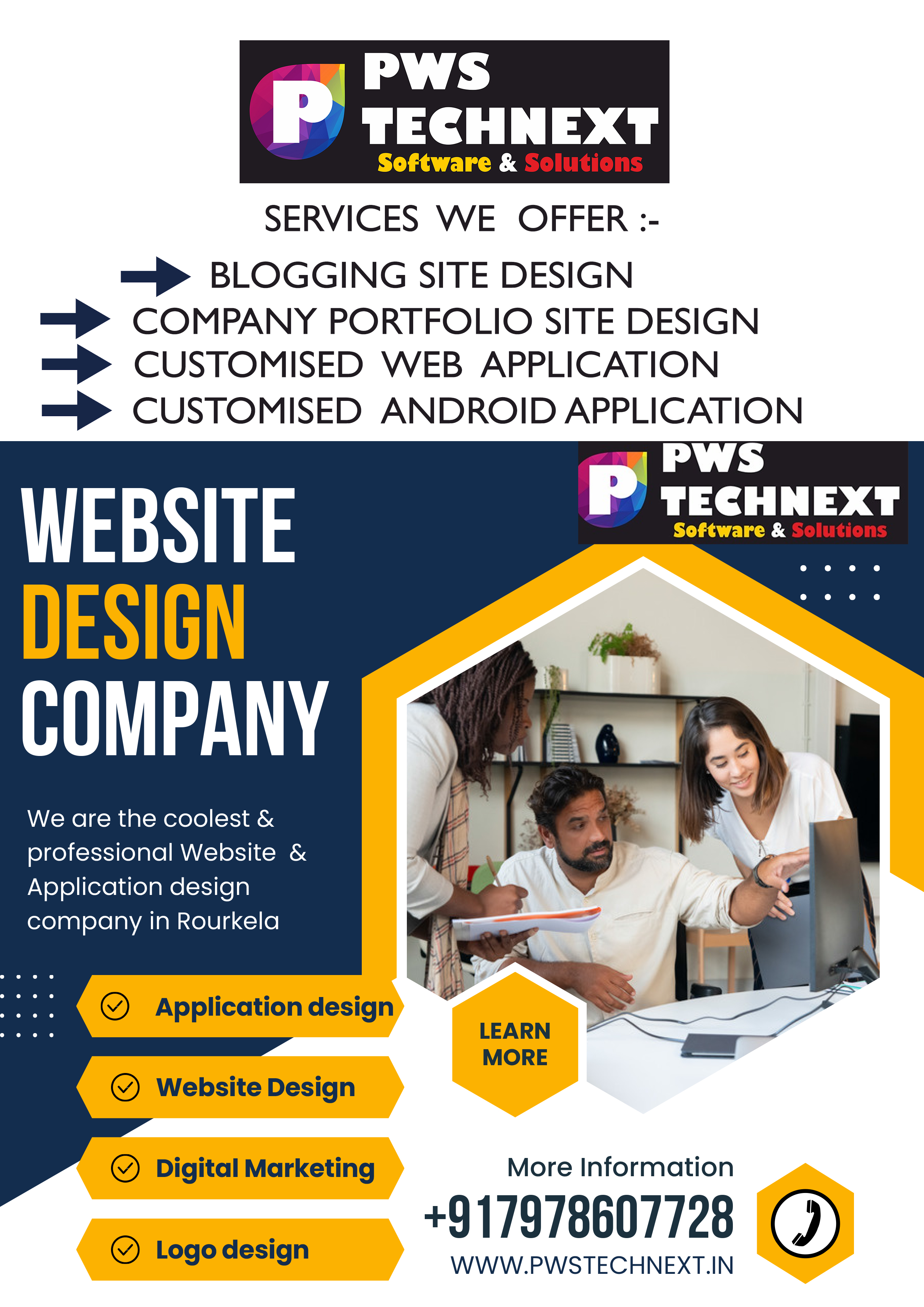Pws Technext is highly rated Web Design & Development Organization based in Rourkela (Odisha), India, having almost 12+ years of experience in design and development field.